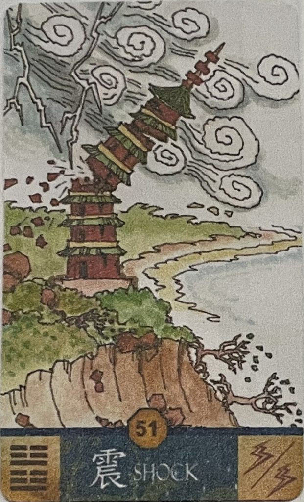 上卦是代表對方及事象「震」為雷之象,下卦代表自己,震有雷或驚動之象,同時在上下二卦中陽爻皆壓於二陰爻之下,表 示有事蘊釀中,陽氣主動而受重陰所壓,壓力越大則爆發力強, 若是不爆發則使鬱悶的氣氛得以改觀,但是在天氣可以言吉, 若是在人際上要注意不可過甚,否則會有災禍隨著脾氣爆發失控而來。但事情己開始動了,以卦象顯示狀況多,亦不順暢, 然而只要謹慎注意意外變故的發生,會漸漸好轉而且會有好的结果。問事逢到此卦又無變動爻出現,表示事情剛結束或尚未開始,為轉變關鍵點。